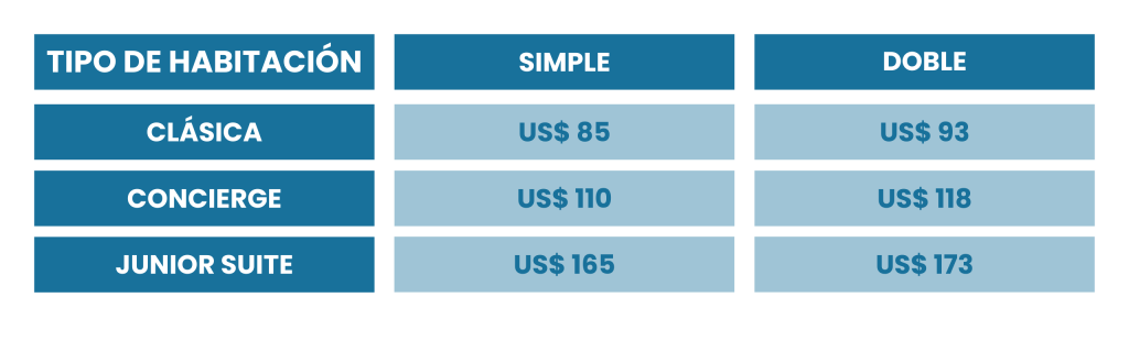 • Las tarifas de alojamiento están sujetas al 10% de servicios y al 18% de impuestos de ley vigente (IGV), los cuales podrás ser modificados sin previo aviso de acuerdo a regulaciones gubernamentales.